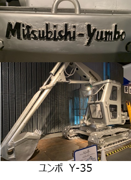 展示室を進んでいくと何やら見慣れないメタリックの重機が見えてきた。お尻のところに「Mitsubishi-yumbo」と書いてある。ショベルカーを”ユンボ”と呼ぶのはなんとなく知っていたけれど、これが本当の”ユンボ”なんですね。1964年の東京オリンピックの建設現場でも活躍したという日本初の油圧ショベルを見てしばし感動。
