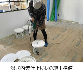 なぜ高齢者福祉施設なのかとも思いましたが、設計士の方が仰るには「介護の問題等で施設に入居せざるを得なくなったお年寄りの方は、湿式建材の家で過ごして来た人が多い。最近のモダンな家で多く使用される壁クロスの部屋に長い時間いると、見慣れない空間にいることもあって、『施設に入れられ、見捨てられた』と思う傾向がある」そうです。