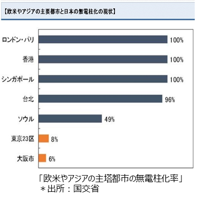 日本は無電柱化では国際的に大きく遅れている