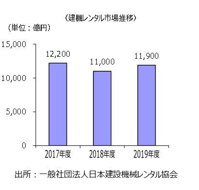 2019年度の建機レンタル市場は対前年比108%の11,900億円