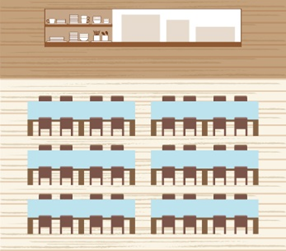 この設計活動は、亀戸にある精密機器工場で約100名収容できる社員食堂。