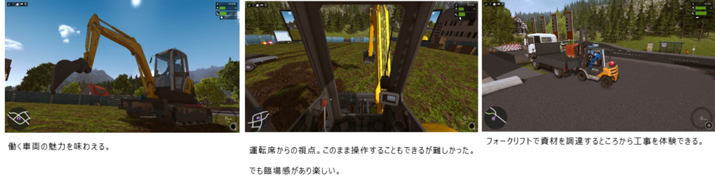 プレイして思ったのが建機の操作は設計や計画されたものを目標にしてアクションを起こすチャレンジ型のゲームであることだ。建機の挙動や、工事の目的、その方法など巧みにゲームに落とし込んでいる。リアルな部分が「建設業への興味・関心」を持って貰う訴求方法の一つになるのではないかと思わせる。