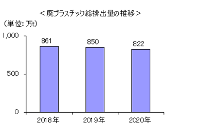 廃プラスチック総排出量は2020年で822万トン