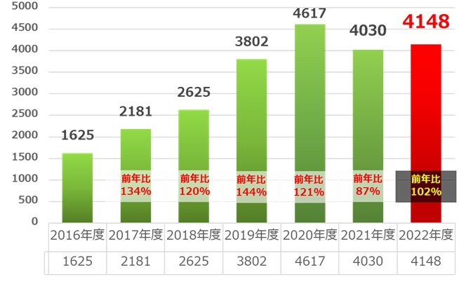 また2022年度3月の増加に関しては、年度末に起因するものと推察する。