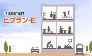 「浮床用防振材 ビブラン-E」は、浮床用の防振材として振動遮断性能、施工性、耐化学薬品性、耐水性に優れ、経年変化の少ない浮床用防振材です。