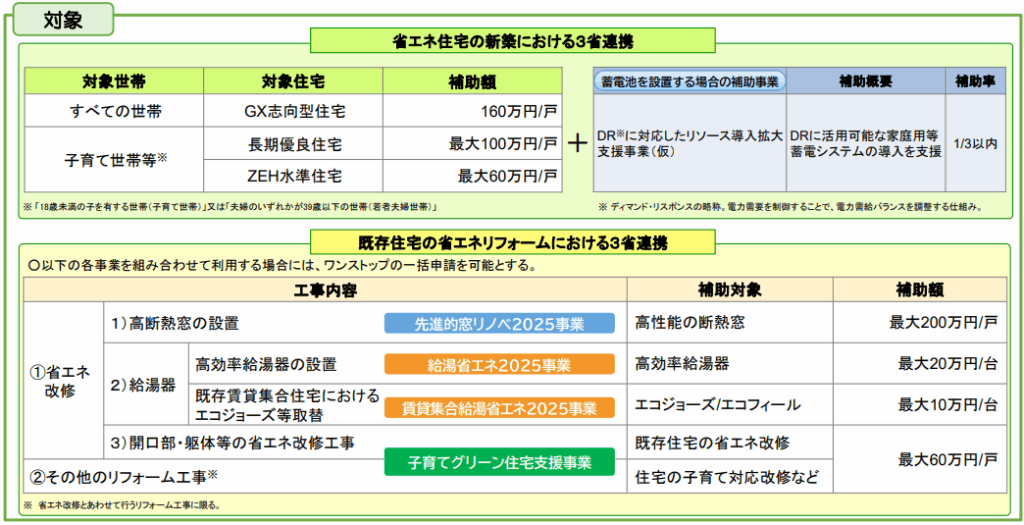 出所:住宅省エネキャンペーンにおける3省連携(新築・リフォーム)