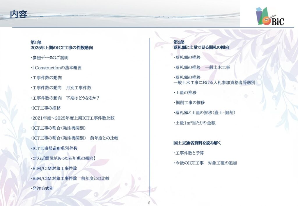 この度、建設業界に特化したマーケティングで40年の実績を持つベーシックインフォメーションセンター株式会社(本社:東京都千代田区、代表取締役:多胡圭介)は、土木関連事業者向けに、「i-Construction最新動向 2025年度上期版」レポートの販売を開始しました。