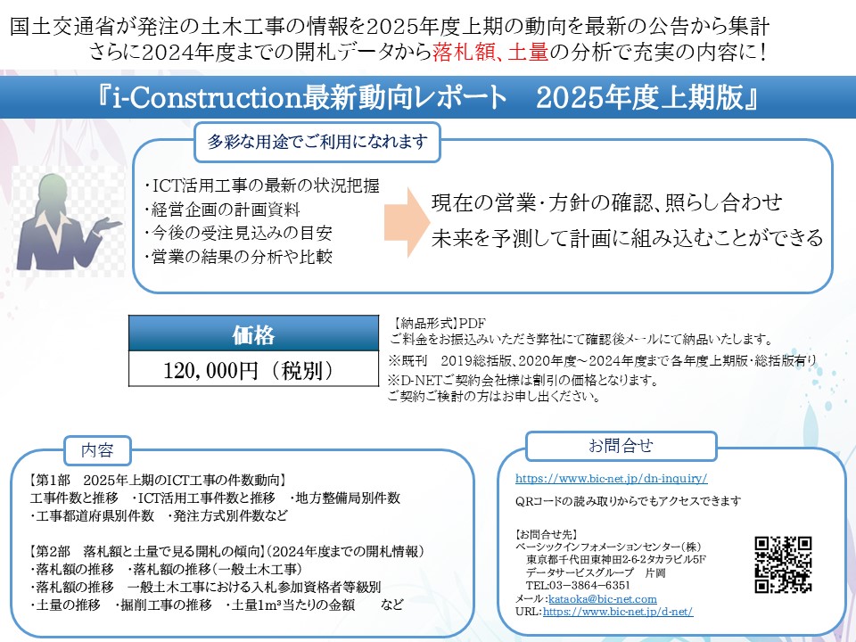 レポートの基データとなっている弊社の「全国土木工事情報D-NET」についての詳細はこちら⇒https://www.bic-net.jp/d-net/
