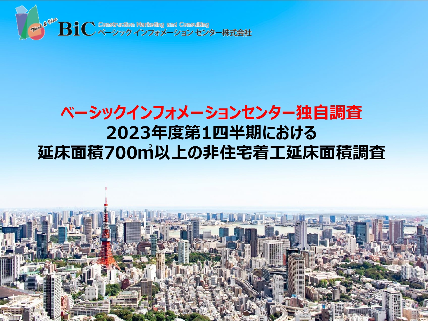 建築業界に特化したマーケティングで40年の実績を持つベーシックインフォメーションセンター株式会社(本社:東京都千代田区 代表取締役:伊藤敏郎)は、同社データサービスの全国建築計画物件情報「KJ-NET」の2023年6月配信までのデータを基に『2023年度第1四半期における延床面積700㎡以上の非住宅着工延床面積調査』を行った。詳細については、開催するセミナーで説明する。